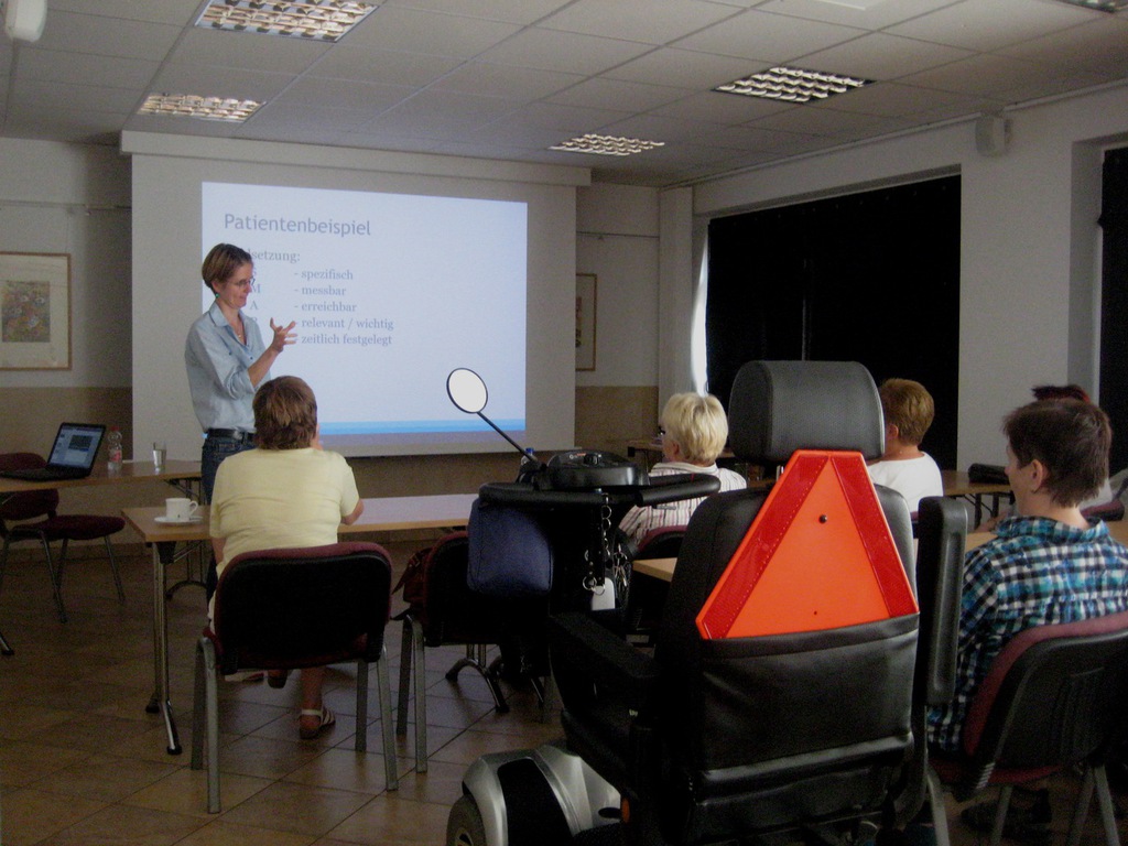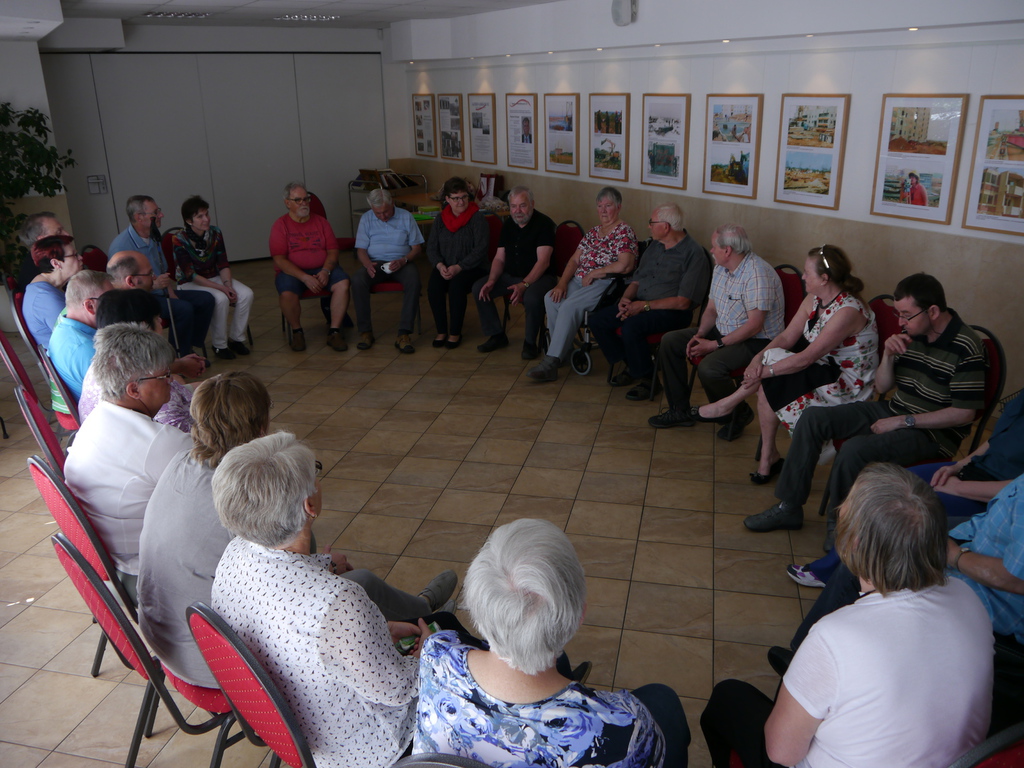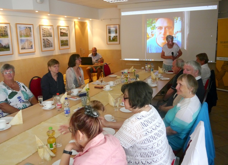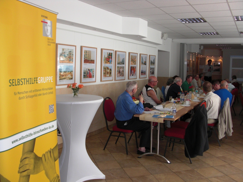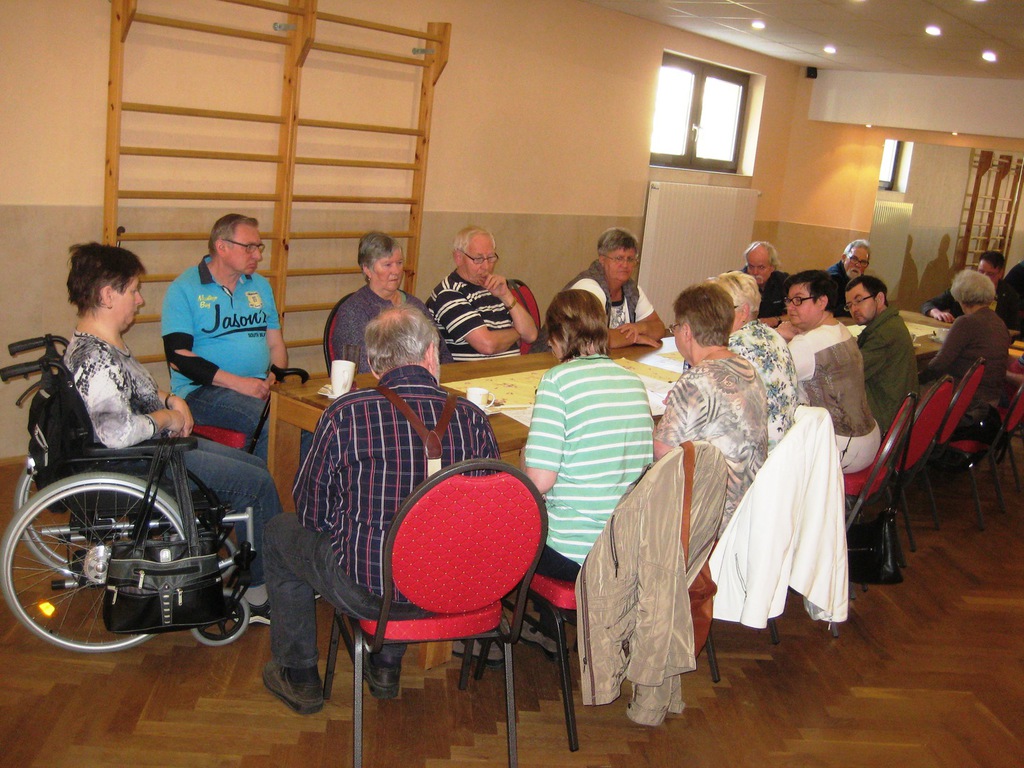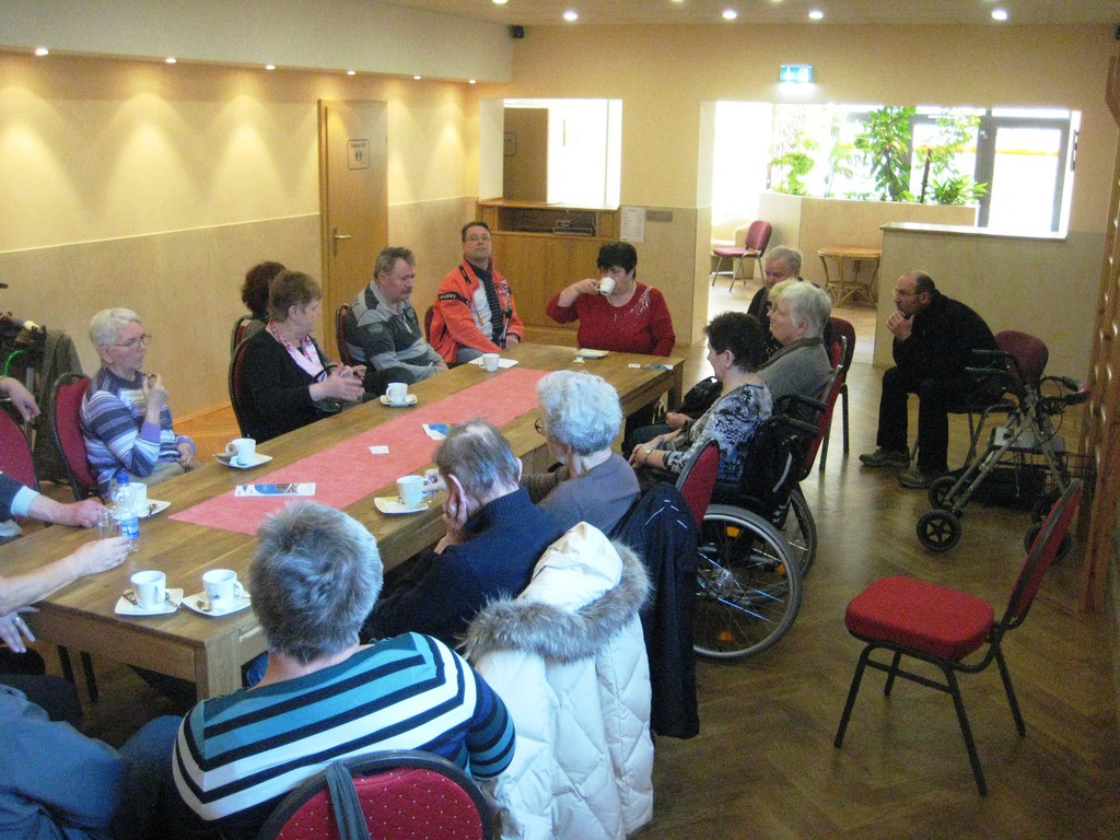 Neue Gesichter sind auch in dieser Runde gern gesehen und so freute sich die Gruppe über einige Gäste, die zum ersten Mal ein Treffen besuchten. Um gar nicht erst Barrieren aufkommen zu lassen, stellte sich jeder mit seiner "Kranken"-Geschichte vor. Mit viel Mut, Ausdauer und Ehrgeiz ist es den meisten gelungen, sich von den Folgen eines Schlaganfalls oder Unfalls gut zu erholen. Viele Reha-Maßnahmen und physiotherapeutische Aktivitäten habe geholfen, mit der neuen Situation und ihren Einschränkungen zurecht zu kommen. Aber es gibt auch Betroffene, die sich leider nur mit unterstützenden Mobilitätshilfen, wie Rollstühlen, Rollatoren oder Gehhilfen bewegen können. Das Ziel einer Selbsthilfegruppe ist es, sich gegenseitig zu ermutigen und auch praktische Lebenshilfe zu leisten. Gemeinsame Aktivitäten stärken das Selbstwertgefühl oder man hat einfach nur Spass zusammen. Bereits das 20-jährige Bestehen wird in diesem Jahr am 10.Juni in unseren Räumlichkeiten gefeiert. Gern unterstützen wir die Gruppe durch Bereitstellung unserer behindertengerechten Räumlichkeiten oder auch durch organisatorische Hilfestellung.