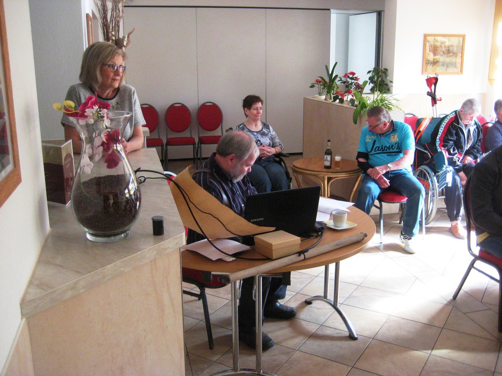 Wieder war es soweit, dass der monatliche Treff der Selbst-hilfegruppe für Menschen mit Handicaps nach Schlaganfall bei uns in der Goldsternstr. 9 stattfand. Gespannt lauschten die Gäste dem Vortrag ihres Leiters, Herrn Alfred Fleisch-mann, der wissenswertes aus seiner früheren beruflichen Tätigkeit präsentierte.