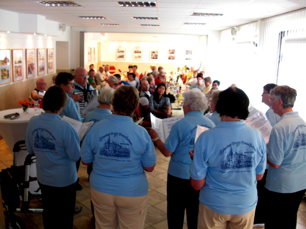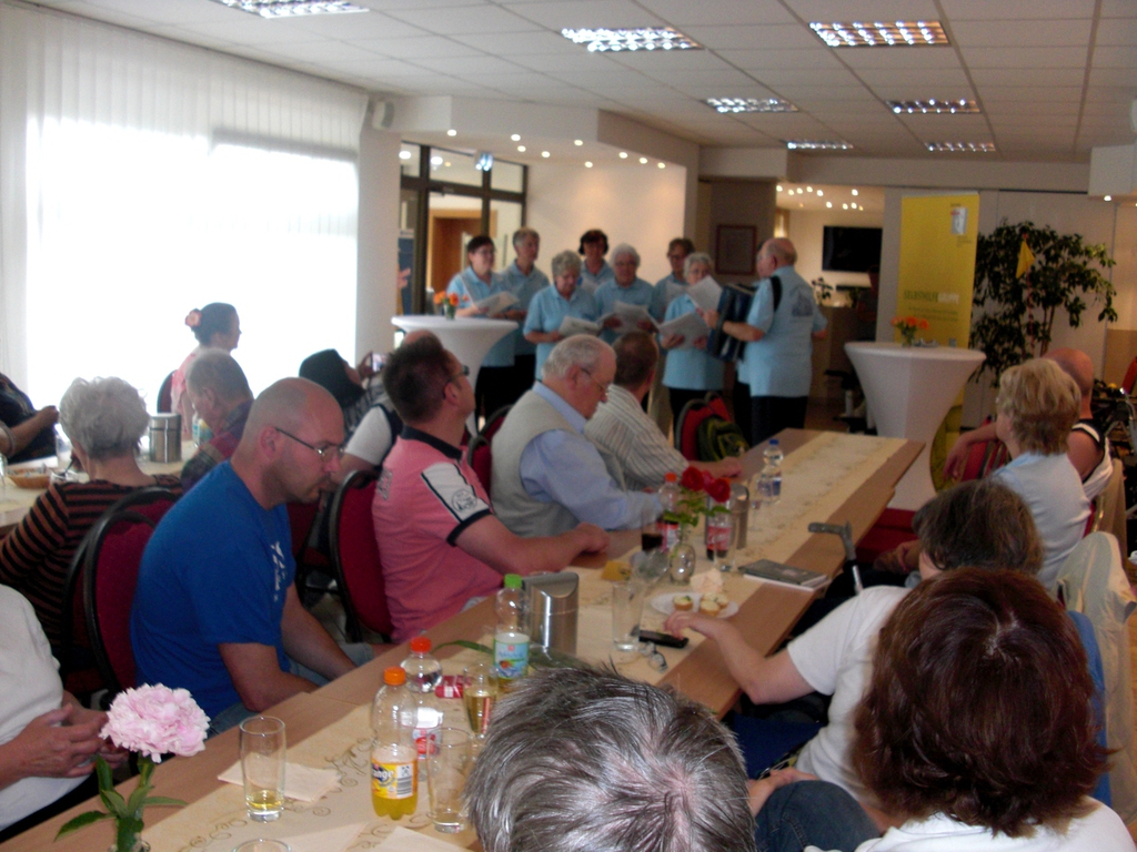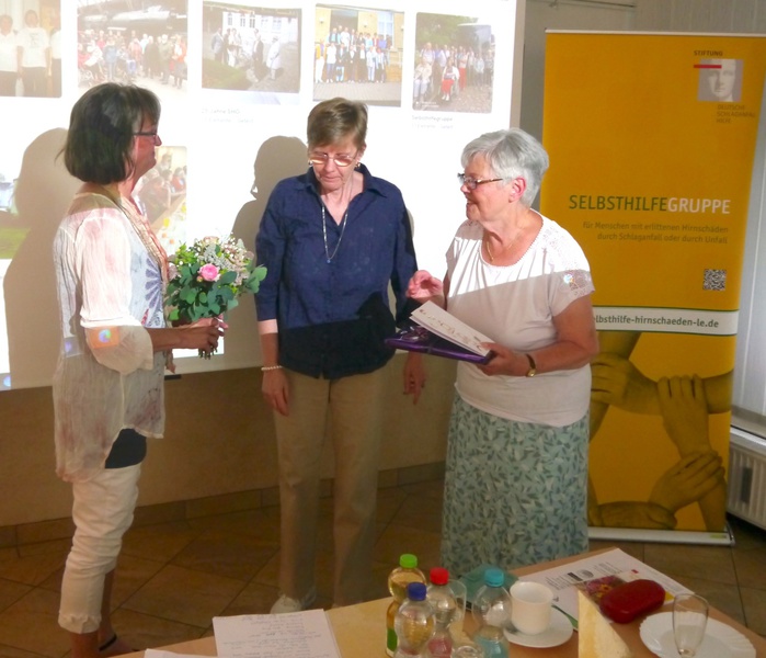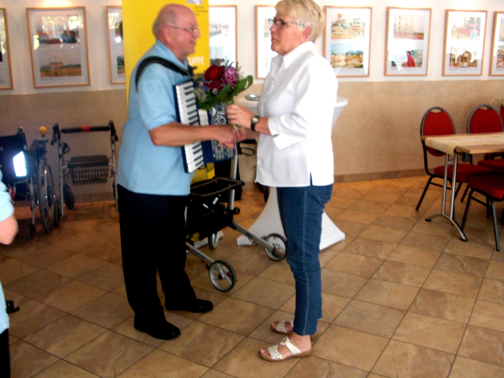 Besondere Freude bereiteten wir auch der SHG Schlaganfall bei der Gestaltung ihrer Festveranstaltung am 10. Juni anlässlich des 20-jährigen Bestehens. Neben dem Fachvortrag von Dr. Sehm des Max-Planck-Institutes gab es Glückwünsche und Blumen für viele Akteure, die das Gruppenleben bereichert haben. Ein kabarettistischer Beitrag von Horst Bauer als Putzfrau Erna, ein musikalisches Mitmachprogramm vom Schreberchor und die gastronomische Versorgung durch den Jugend- und Altenhilfeverein bereiteten den 42 Teilnehmern der Leipziger und Dresdner Gruppe einen besonderen Tag.