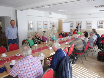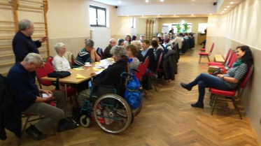 Im Anschluss an den Vortrag freuten sich die Gäste auf den gemütlichen Plausch bei einer Tasse Kaffee. Der benachbarte Sportraum bot für die Teilnehmer, die mehrheitlich auf Hilfsmittel angewiesen sind, genügend Bewegungs-freiheit.