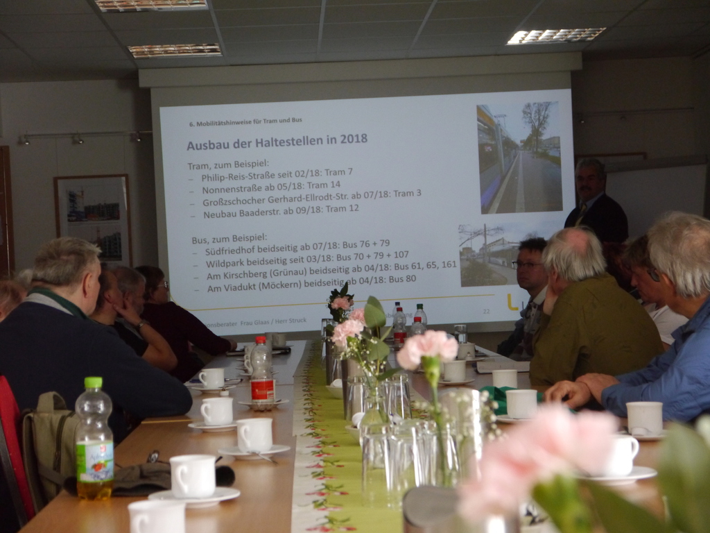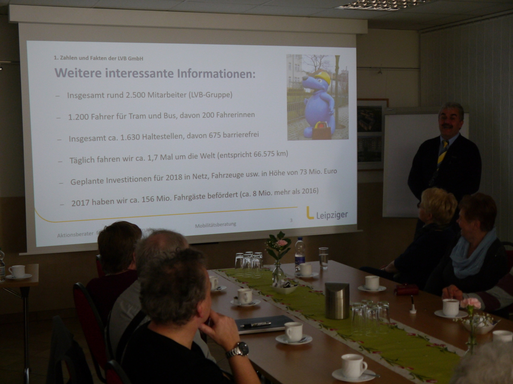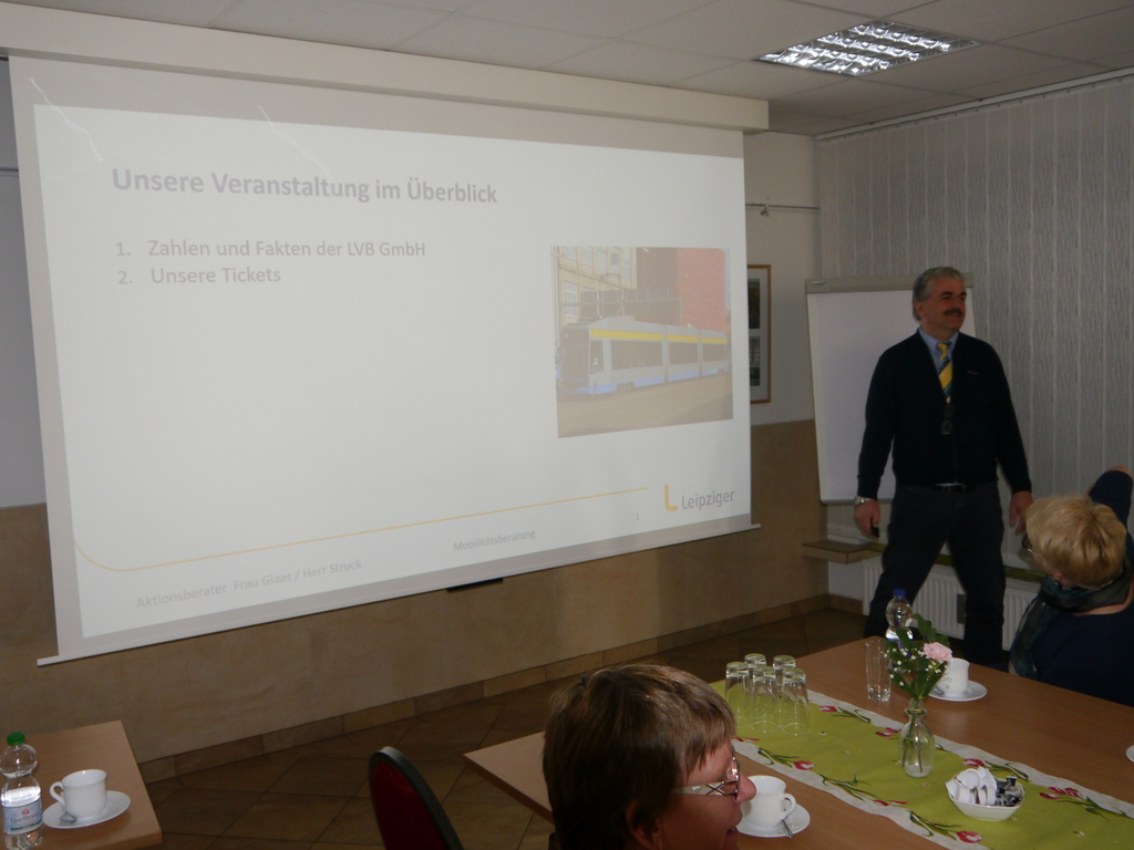 Die SHG Schlaganfall traf sich am Samstag, 7. April in der Zeit von 10 – 12 Uhr in der Goldsternstraße 9 und erhielt sachkundige Unter-stützung durch die Mobilitäts-beratung der Leipziger Verkehrsbetriebe, ein kosten-loses Angebot, um die Möglichkeiten der öffent-lichen Verkehrsmittel besser kennen zu lernen. Praktische Tipps und Hinweise besonders für mobilitätseingeschränkte Fahrgäste, Informationen zu aktuellem Baugeschehen am Straßenbahnnetz und Möglichkeiten der Nutzung von Bussen in und um Leipzig wurden ausführlich erläutert. Besonderes Interesse galt natürlich den Tarifen, die in der Diskussion auch kritische Beiträge erzeugten. Der Treff im Mai findet auch am 5. Mai in der Zeit von 10 – 12 Uhr in der Goldsternstraße 9 statt und wird neben dem Erfahrungsaustausch einen Vortrag des Bereiches Neurologie der Universität Leipzig beinhalten.