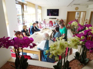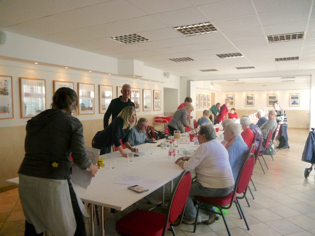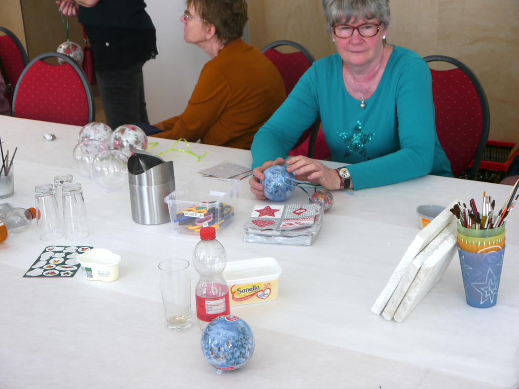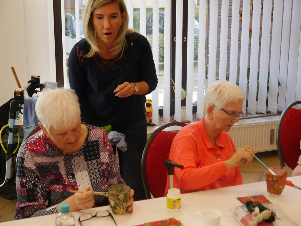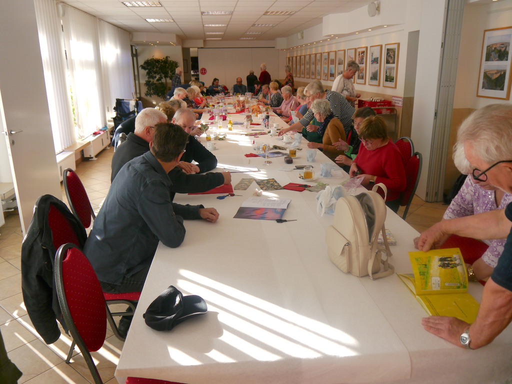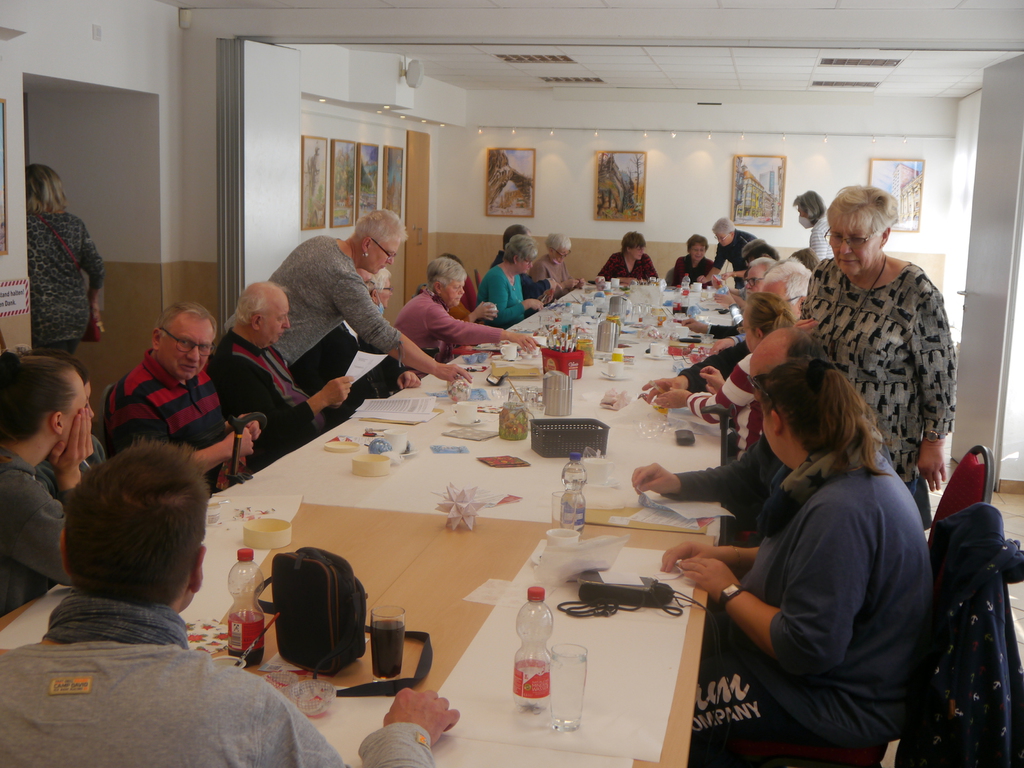 Nach einem Schlaganfall ist es von hoher Bedeutung, die eigene Feinmotorik zu trainieren. Die Selbsthilfegruppe Schlaganfall setzt daher bei jedem Treffen darauf, Spaßiges mit Sinnvollem zu kombinieren. Sehr schnell stellt sich dann heraus, dass die Gruppe sich gegenseitig stärkt: Wo der Eine Schwierigkeiten hat, hilft schnell ein Anderer. Auch die Mitarbeiterinnen und Mitarbeiter des Jugend- und Altenhilfevereins unterstützten die Gruppenmitglieder und halfen beim Kleben, Binden, Schneiden und Pinseln. An dieser Stelle ein herzliches Dankeschön für die Hilfe und den heiteren Nachmittag in den Räumlichkeiten in der Goldsternstraße.
