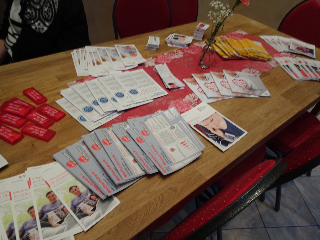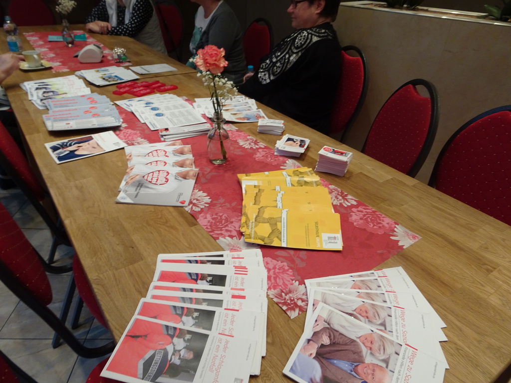 Samstag, der 6. Mai stand ganz im Zeichen des bundesweiten Tages der Selbsthilfe am 13. Mai 2017. In der Goldsternstraße 9 trafen sich Mitglieder und Gäste der SHG Hirngeschädigte nach Schlaganfall und tauschten ihre Erfahrungen in einer Gesprächsrunde mit Betroffenen und Angehörigen im Umgang mit der Krankheit aus. Es bestand die Möglichkeit zum Schlaganfall - Risikotest, zum Messen des Blutdrucks und für informative Einzelgespräche. Unterlagen wie Flyer und Prospekte über das Thema Schlaganfall bzw. Ansprechpartner für Hilfe und Nachsorge konnten mitgenommen werden. Die SHG Schlaganfall unterstützt seit vielen Jahren Angehörige und Betroffene und feiert noch in diesem Jahr am 10. Juni ihr 20-jähriges Bestehen.