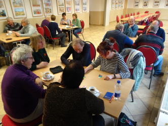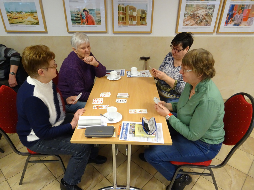 Gemeinsames Spielen stand bei diesem Treff auf der Tagesordnung oder es wurde einfach mal geplaudert. Für Menschen mit Handicaps wie in dieser Gruppe ist manches Spiel eine große Herausforderung. Denk-prozesse sind zum Teil verlangsamt und motorische Einschränkungen behindern das Bewegen von Spielfiguren oder das Halten von Karten. Aber in dieser Gemeinschaft muss sich keiner vor dem anderen verstecken, alle werden mitgenommen oder man hilft sich gegenseitig. Schnell wurde noch ein Büchertisch aufgebaut, da dem Verein auch oft Buchspenden zukommen, die dann gern kostenlos an andere Interessenten weitergegeben werden. Beim nächsten Treff am 2. März 10 – 12 Uhr steht eine Osterbastelei auf dem Programm.