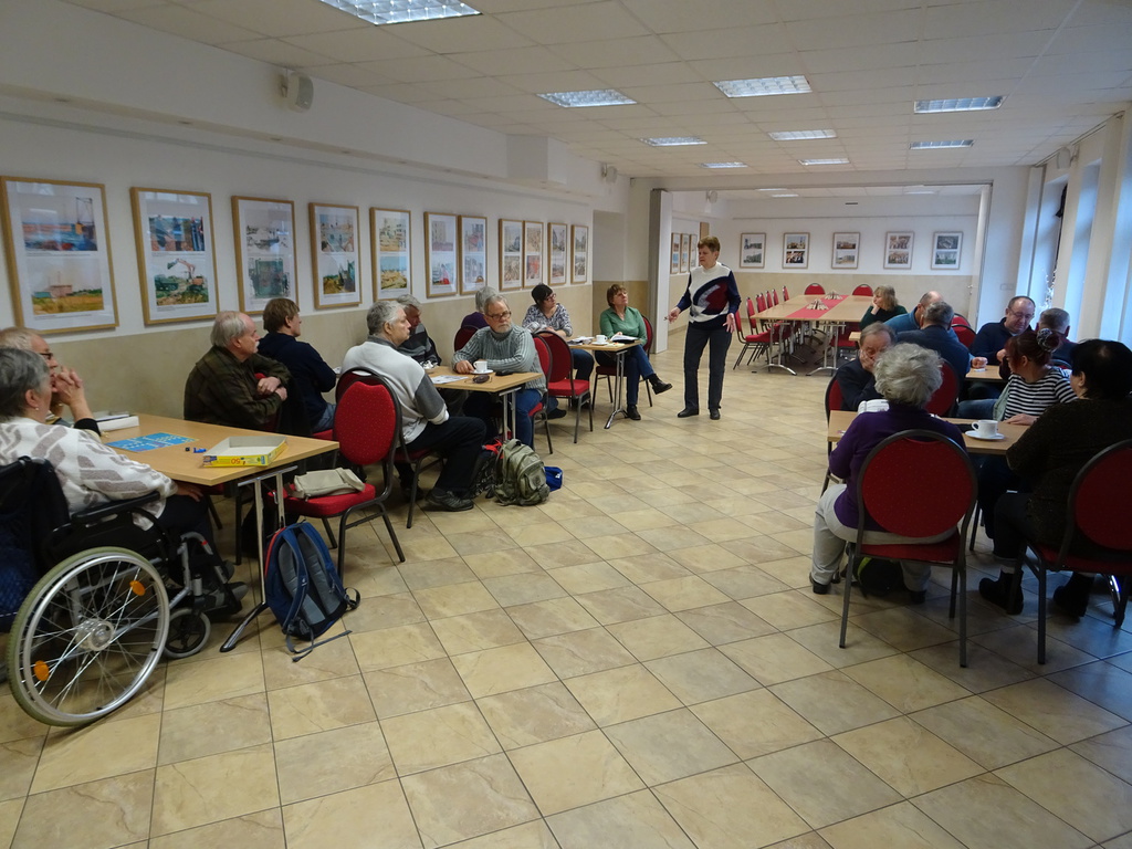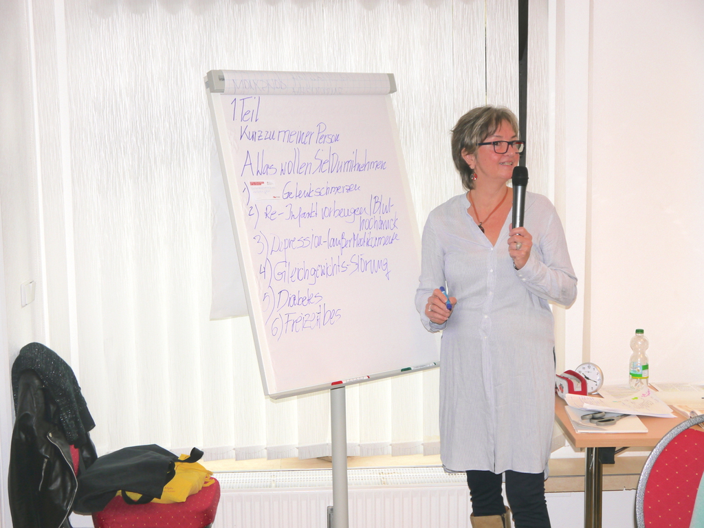 Zuerst hat die Referentin Gelenkschmerzen thematisiert und erläutert. Danach wurden Tipps gegeben wie man einen Re-Infarkt vorbeugen kann bzw. den Bluthochdruck kontrollieren kann. Weiterhin kam es zur Diskussion von Depressionen, Gleichgewichtsstörungen und Diabetes. Während des Vortrages sollten die Teilnehmer verschiedene Bewegungen als testweise ausführen. Interessant waren auch die wichtigen Freizeitbeschäftigungen, die als Vorbeugung unternommen werden können. Wenn Sport zum Beispiel im richtigen Maß betrieben wird, kann er den psychischen Zustand stabilisieren.