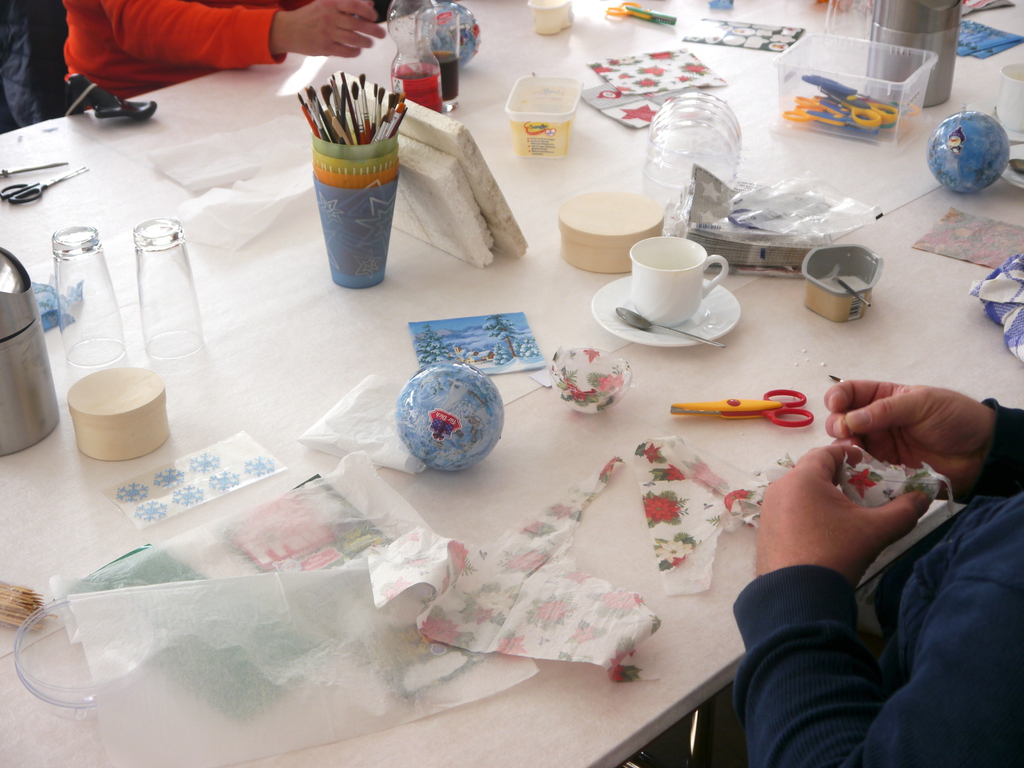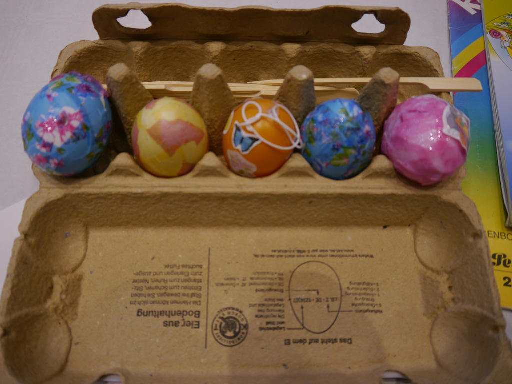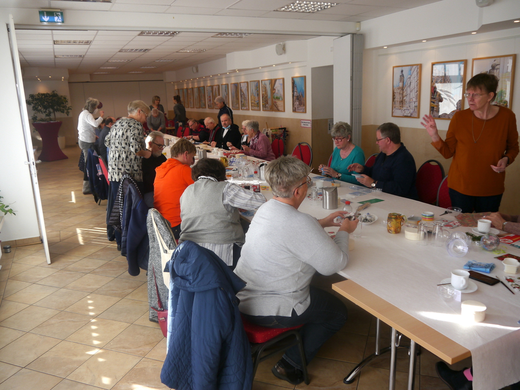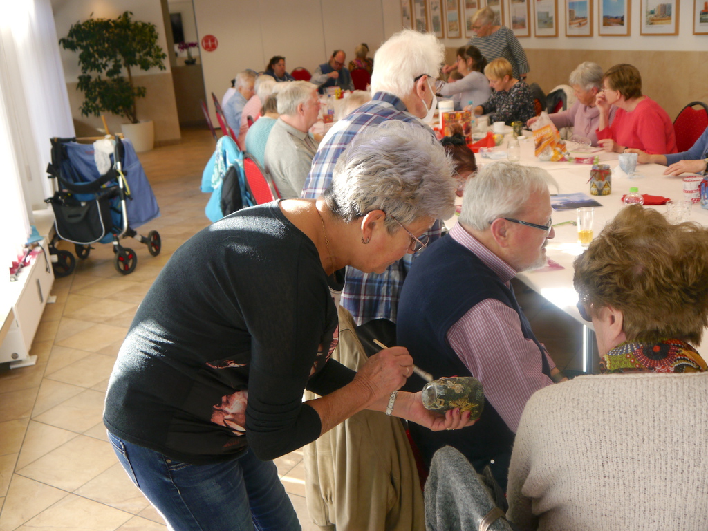 Die Teilnehmer trainierten dabei insbesondere ihre feinmotorischen Fertigkeiten und unterstützten sich gegenseitig. Im Ergebnis entstand dekorativer Osterschmuck, so dass das Osterfest nun kommen kann!