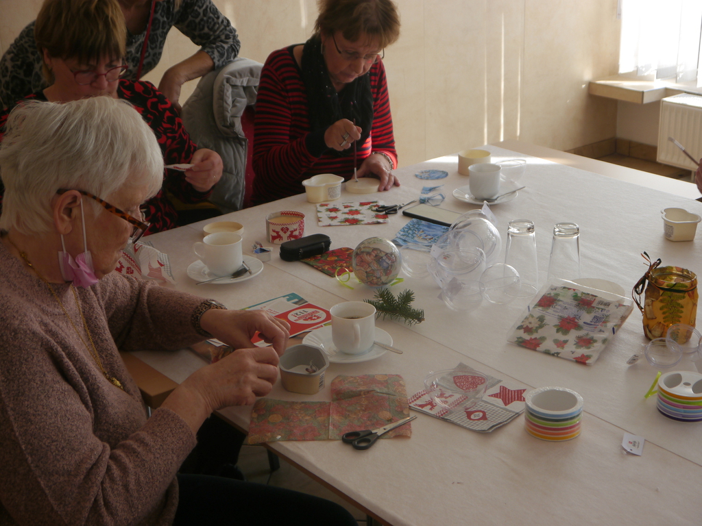 Die Weihnachtszeit steht vor der Tür und schon bald entzünden wir die erste Kerze am Adventskranz. Um in den eigenen vier Wänden eine gemütliche Weihnachtsstimmung herzustellen oder schonmal ein schönes Weihnachtsgeschenk vorzubereiten, traf sich die SHG Schlaganfall am 05. November 2022 zum Weihnachtsbasteln und stellte dabei stimmungsvolle Kerzenhalter her. Mithilfe der berühmten Serviettentechnik entstanden wunderschöne Exemplare, welche in der Advents- und Weihnachtszeit mit den unterschiedlichsten Wintermotiven für Gemütlichkeit sorgen werden.