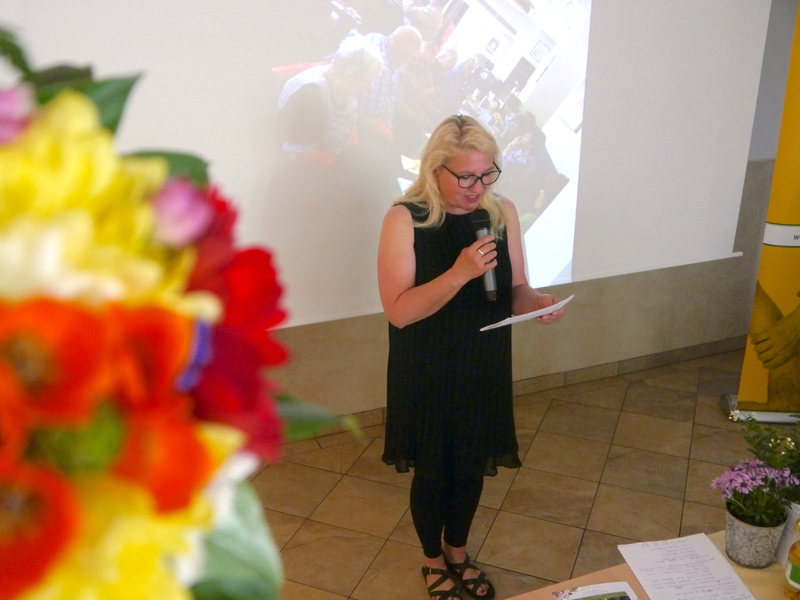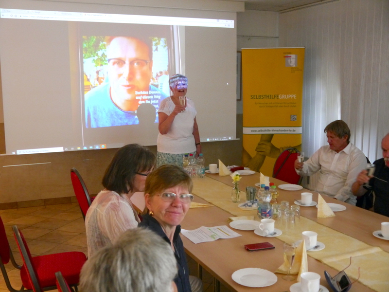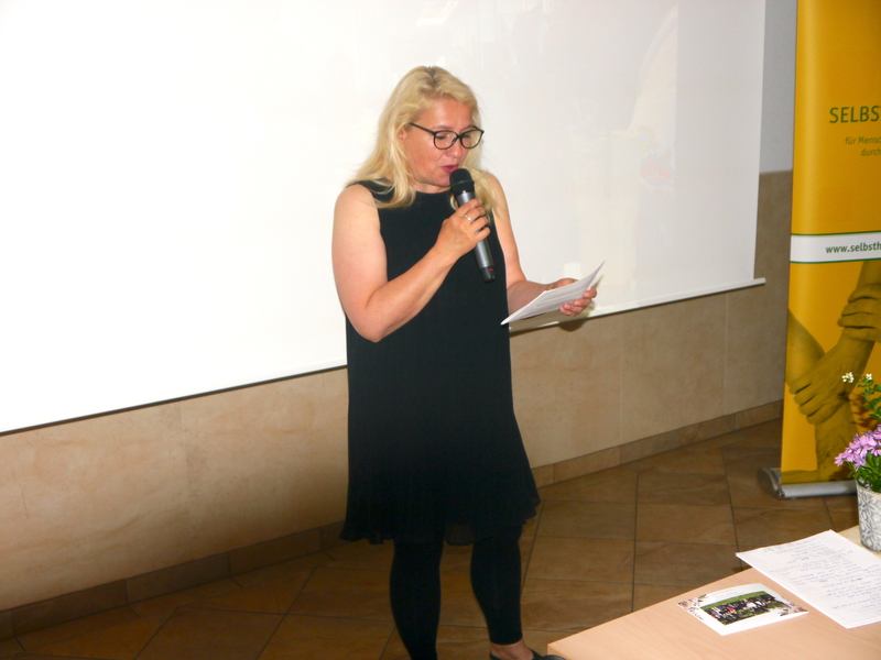 Um 10:00 Uhr begann die Festveranstaltung, die zunächst mit einer Begrüßung und ein paar kurzen Ansprachen, sowohl von Gruppenleiterin Dagmar Grundmann als auch von verschiedenen Gästen, die seit vielen Jahren mit der SHG verbunden und eine große Hilfe sind, eingeläutet wurde: So richtete die Leiterin der Selbsthilfestelle des Gesundheitsamts Leipzig Frau Ina Klass ein paar feierliche Worte an die Gruppe, ebenso Frau Elvira Miedtack, die als Sozialarbeiterin an der Tagesklinik für Neurologie der Universität Leipzig tätig ist. Auch Frau Kristin Grahmann von der Fortbildungsakademie der Wirtschaft (FAW Leipzig) bekundete der SHG mit ein paar Worten ihre Glückwünsche.