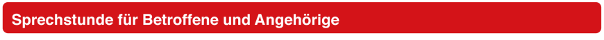 Jeden letzten Montag im Monat findet von 14.00 bis 16.00 Uhr in der Rosa-Luxemburg-Straße 29 in 04103 Leipzig (hinter der FAW) eine Sprechstunde statt. Bitte melden Sie sich hierzu vorab telefonisch bei Gruppenleiterin Dagmar Grundmann an.