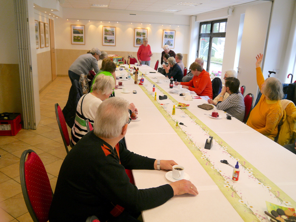 Am ersten Samstag im Monat kommt die Selbsthilfegruppe Schlaganfall zusammen, um gemeinsam schöne Stunden zu verbringen. Für das April-Treffen stand die Gestaltung von Osterdekoration auf dem Programm.
