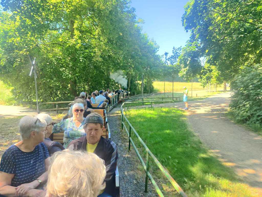 Zu den vielseitigen Aktivitäten der SHG Schlaganfall zählen auch gemeinsame Ausflüge. Gerade im Sommer führt es die Gruppe an wunderschöne Orte, an denen man gemeinsam Grenzen austesten und sich gegenseitig unterstützen kann. Zum monatlichen Treffen im Juni verschlug es die Selbsthilfegruppe daher an den malerischen Auensee in Leipzig Wahren zu einer schönen Rundfahrt mit der Parkeisenbahn, welche einmal um den See führte. Ein paar Gruppenmitglieder fühlten sich an diesem schönen Nachmittag in der Lage, die Runde zu Fuß zu bestreiten und trafen die fahrenden Gruppenmitglieder anschließend auf einen gemeinschaftlichen Imbiss. Bei Eis, Kräppelchen, Bratwurst mit Pommes und einem kühlen Bier freuten sich alle über den gemeinsamen Ausflug und genossen den Austausch.