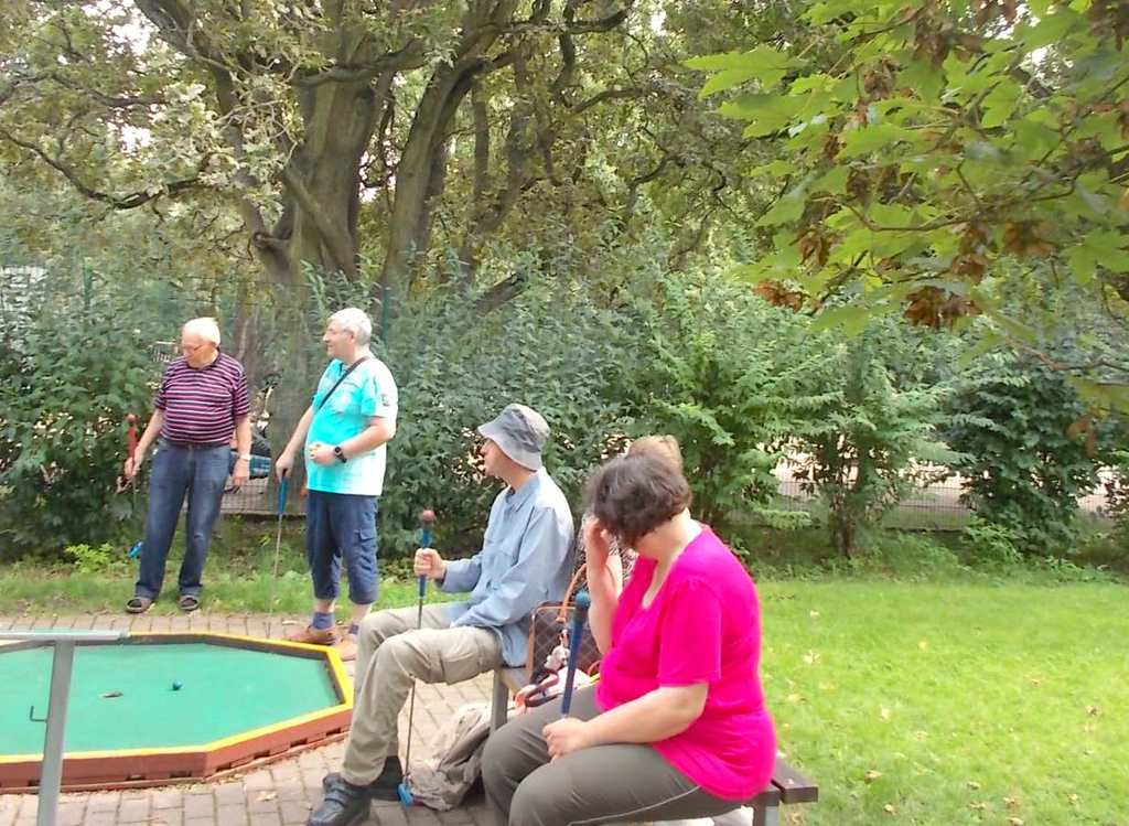 Nach der Sommerpause freuten sich die Mitglieder der Selbsthilfegruppe Schlaganfall über das Wiedersehen. Und wo könnte man ein schöneres erstes Treffen verleben als beim gemeinsamen Minigolfen im Clara-Zetkin-Park? Bei bestem Wetter erlebte unsere Gruppe ein paar schöne Stunden und wir freuen uns besonders über den folgenden Erfahrungsbericht von Gruppenmitglied Fr. Hütter: