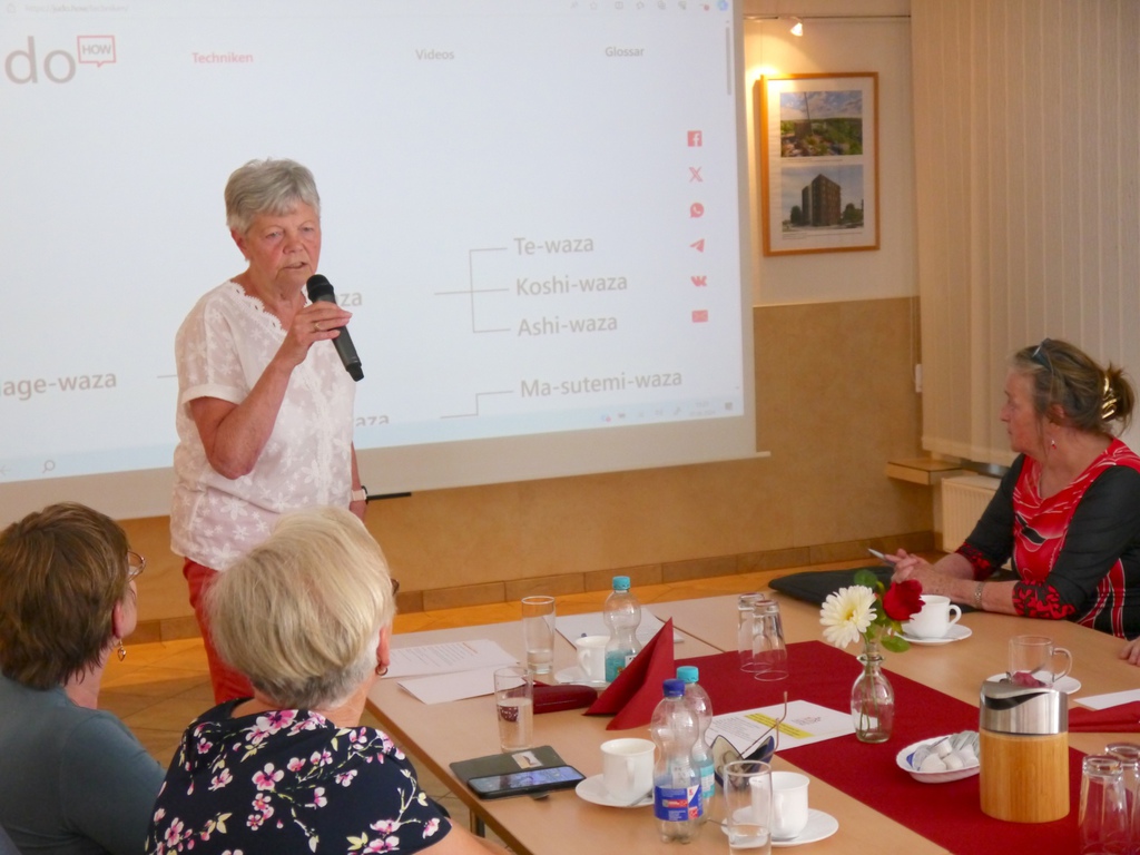 Das harmonisch gewählte Leitungsteam übernimmt Aufgaben wie die Organisation der Treffen, die Planung von Aktivitäten und die Betreuung der Mitglieder. Dagmar Grundmann betonte, wie wichtig es sei, die wachsende Arbeit auf mehrere Schultern zu verteilen, um das erfolgreiche Angebot der Gruppe auch in Zukunft nachhaltig weiterzuführen. Mit einem engagierten Team an ihrer Seite blickt die Vorsitzende voller Zuversicht auf die kommenden Aufgaben. Neben der Wahl der neuen Leitung bot ein weiterer Programmpunkt den Teilnehmenden spannende Einblicke: Die Teilnehmer erfuhren, dass Karate nicht nur körperliche Fitness fördert, sondern auch Konzentration, innere Balance und Selbstbewusstsein stärken kann.