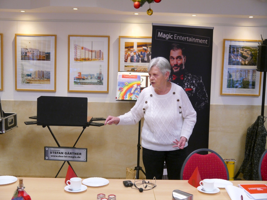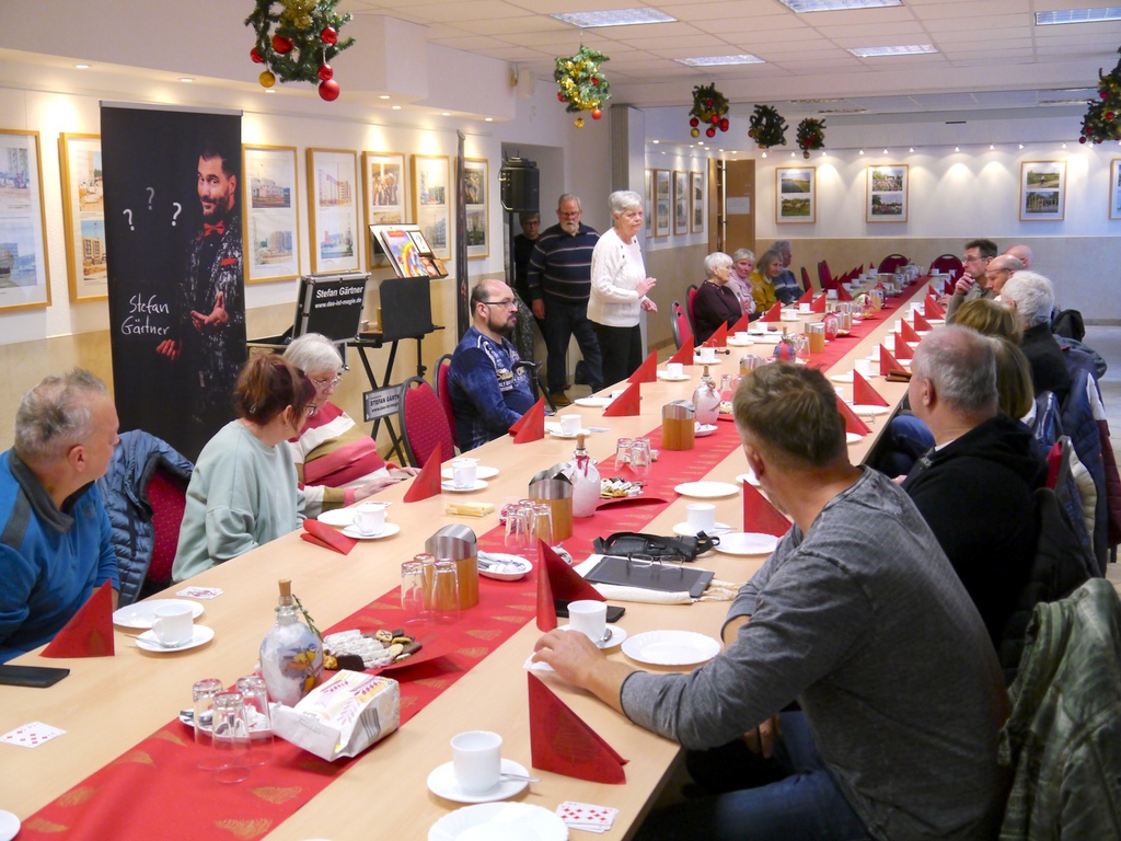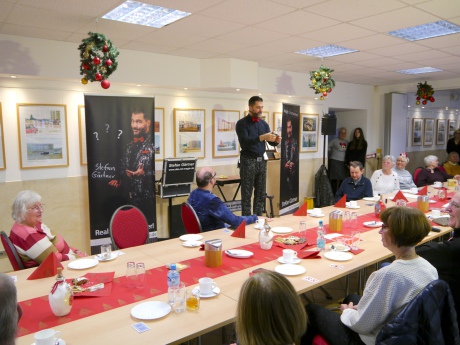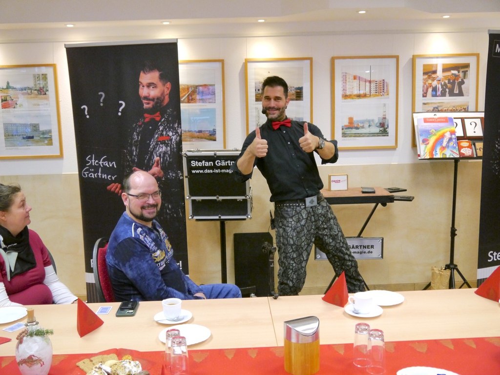 Besonders zauberhaft wurde es, als Magier Stefan Gärtner mit seiner Show für Staunen und Begeisterung sorgte. Mit verblüffenden Tricks und humorvollen Einlagen brachte er alle zum Lachen und sorgte für eine unvergessliche Atmosphäre. Doch auch besinnliche Augenblicke durften nicht fehlen: Ehrungen für engagierte Mitglieder und ein Überraschungsbesuch vom Weihnachtsmann machten die Feier zu einem echten Highlight.
