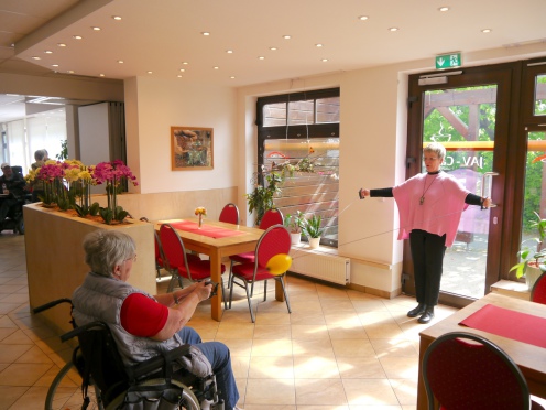 Beim Mai-Treffen der im Jugend- und Altenhilfeverein ansässigen SHG Schlaganfall wurden vor dem Hintergrund des bald stattfindenden Tags gegen den Schlaganfall verschiedene Bewegungsübungen vorgeführt und durchgeführt. Genauer gesagt übten die Mitglieder der Selbsthilfegruppe „Gehweg- und Sitzgymnastik“, um die Risikofaktoren für einen Schlaganfall durch Bewegung zu verringern.