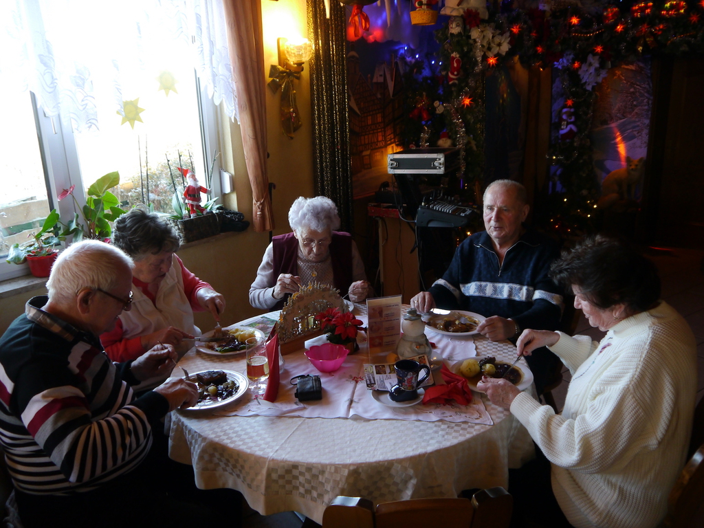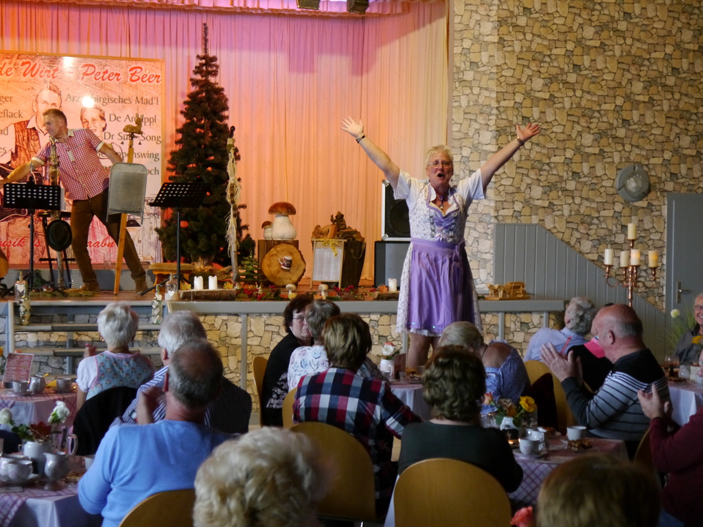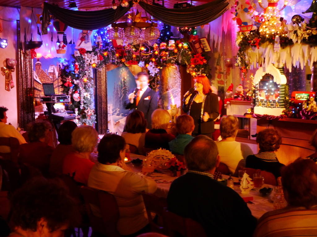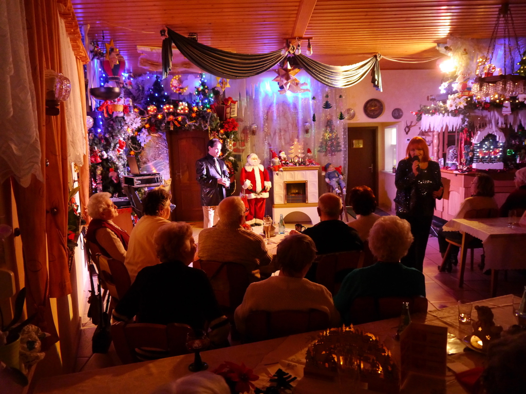 traditionellen Mittagessen mit flambierter Ente vom Grill genossen die Seniorinnen und Senioren eine weihnachtliche Unterhaltungsshow mit Weihnachtsgeschichten und Liedern zum Mitsingen! Vor Antritt