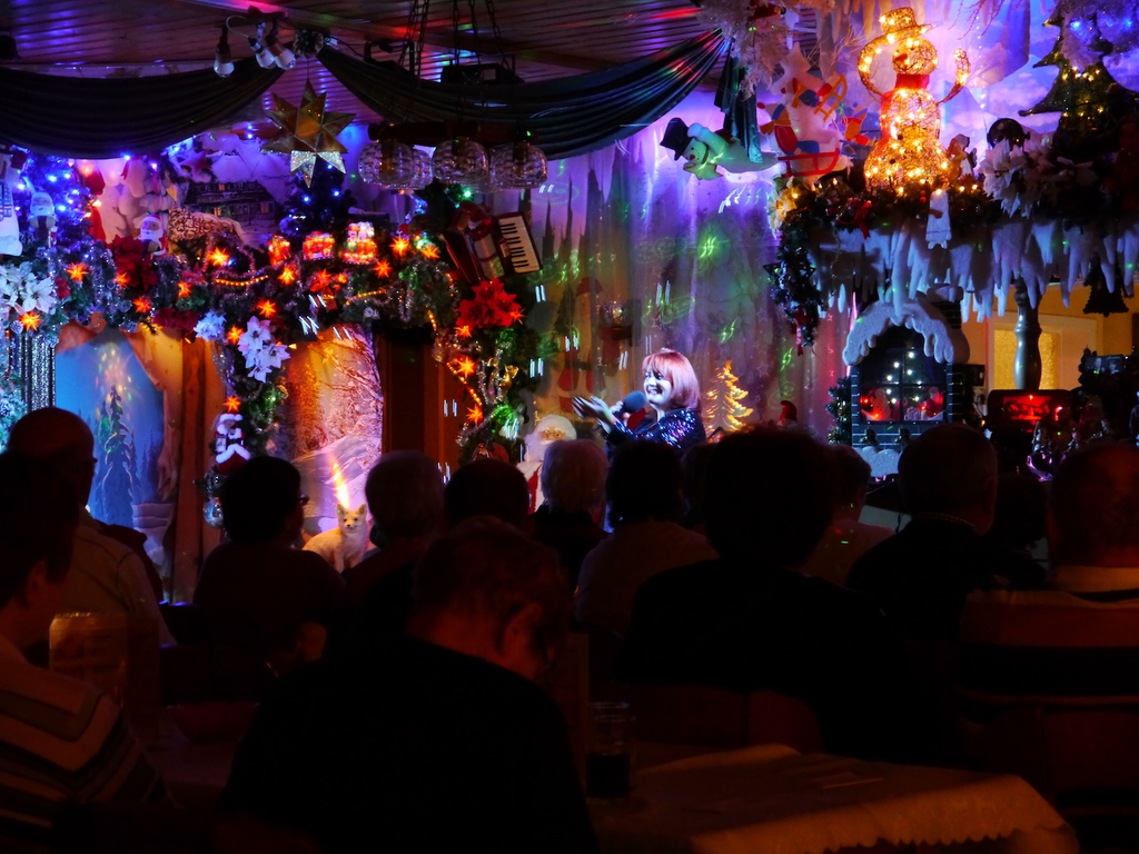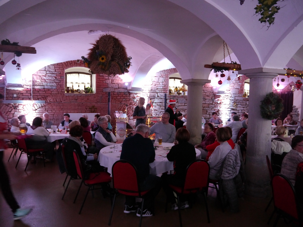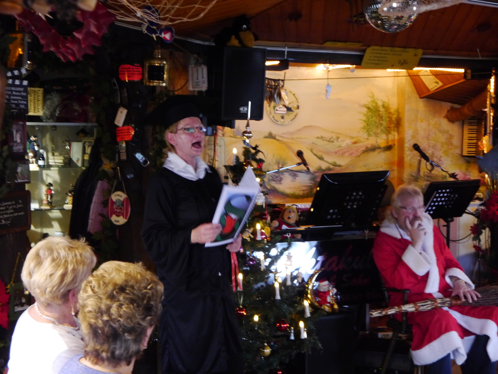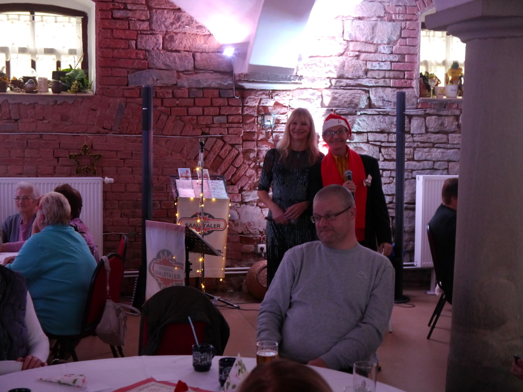 traditionellen Mittagessen mit flambierter Ente vom Grill genossen die Seniorinnen und Senioren eine weihnachtliche Unterhaltungsshow mit Weihnachtsgeschichten und Liedern zum Mitsingen! Vor Antritt