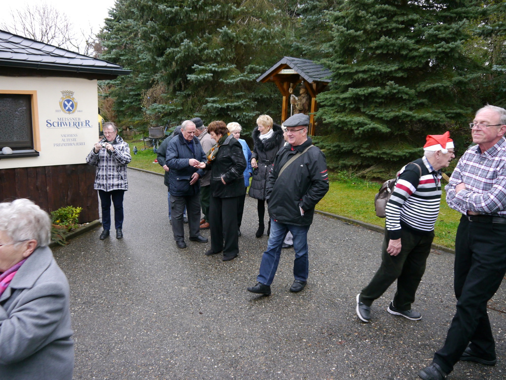 Am Dienstag, den 8. Dezember 2015 brach der Jugend- und Altenhilfeverein mit 40 Seniorinnen und Senioren zur ersten der zwei diesjährigen Weihnachtsbusfahrten nach Tannenberg auf. Bevor die Vereinsmitglieder zu einem traditionellen Mittagessen in die Triebischtalbaude Tanneberg einkehrten, besuchten die Senioren die Otto-Beier-Waffelfabrik in Wilsdruff bei Dresden, welche zu Deutschlands größten und führenden Herstellern feinster Waffeln gehört. Mit über 500 Artikeln aus dem Süßwarenbereich wurde beim Werkseinkauf in der Waffelfabrik jeder Leckermäulchen fündig. Neben dem eigenem Produktsortiment bot die Otto-Beier-Waffelfabrik zudem eine Auswahl an Diät- und Diabetikerprodukten, so dass auch unsere an Diabetes erkrankten Senioren etwas gönnen konnten. Nach dem Besuch des Werksverkaufes fuhren die Vereinsmitglieder mit dem Bus weiter zu einem leckeren Mittagessen in den Landgasthof „Triebischtalbaude“ weiter, wo sie im rustikal-gemütlichen Ambiente mit einem sächsischem Rindersauerbraten mit Kartoffelklößen und Ananas-Rotkraut in Empfang genommen wurden. Nach dem Essen besuchte die Ausflugsgruppe die Firma Knox-Räuchenkerzen in der Gemeinde Mohorn. Bei einem interessanten Museumsbesuch erfuhren die Senioren interessantes über die vom Apotheker Hermann Zwetz vor nunmehr 135 Jahren gegründete und heute älteste Räuchermittelfabrik Europas. Bei der sich an die Führung anschließenden Einkaufsgelegenheit nahmen sich viele Vereinsmitglieder mit Produkten aus der Räucherkerzenfabrik den weihnachtlichen Duft mit nachhause. Zum Abschluss kehrten die Seniorinnen und Senioren noch einmal in die Triebischtalbaude zurück, wo sie bei einem gemütlichen Kaffeetrinken und weihnachtlichen Unterhaltungsprogramm den Tagesausflug gemeinsam ausklingen ließen!