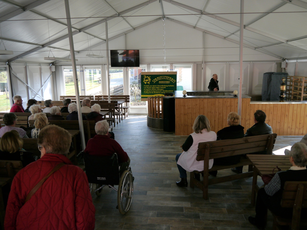 Nach einem leckeren Mittagsmahl erlebten die Seniorinnen und Senioren eine moderierte Rundfahrt mit einem Zwischenstopp auf der Straußenfarm Burkhardt, wo unsere Vereinsmitglieder neben den Freigehegen auch den an das hofeigene Schlachthaus angeschlossenen Hofladen besuchten und dort eine breite Palette an Produkten und Erzeugnissen der Straußenfarm erwerben konnten.