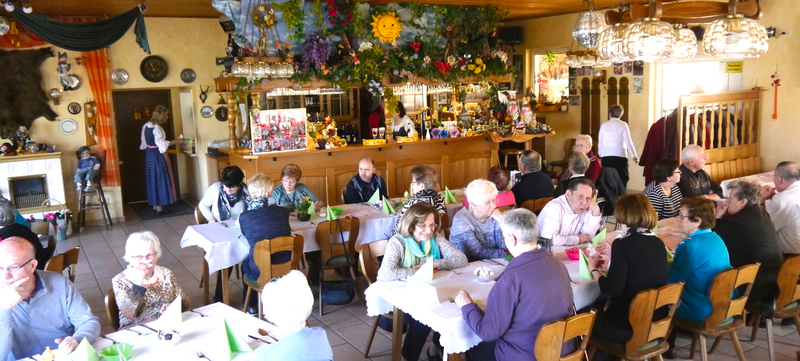 Das österliche Zwei- Gänge Menü, bestehend aus Osterbraten und Creme-Dessert, welches bei unseren Mitgliedern sehr gut ankam, rundete das Ganze noch hervorragend ab. Ein weiterer Höhepunkt des Ausfluges war die moderierte Rundfahrt durch die Dübener Heide, die für unsere Teilnehmer allerlei Osterüberraschungen bereithielt.