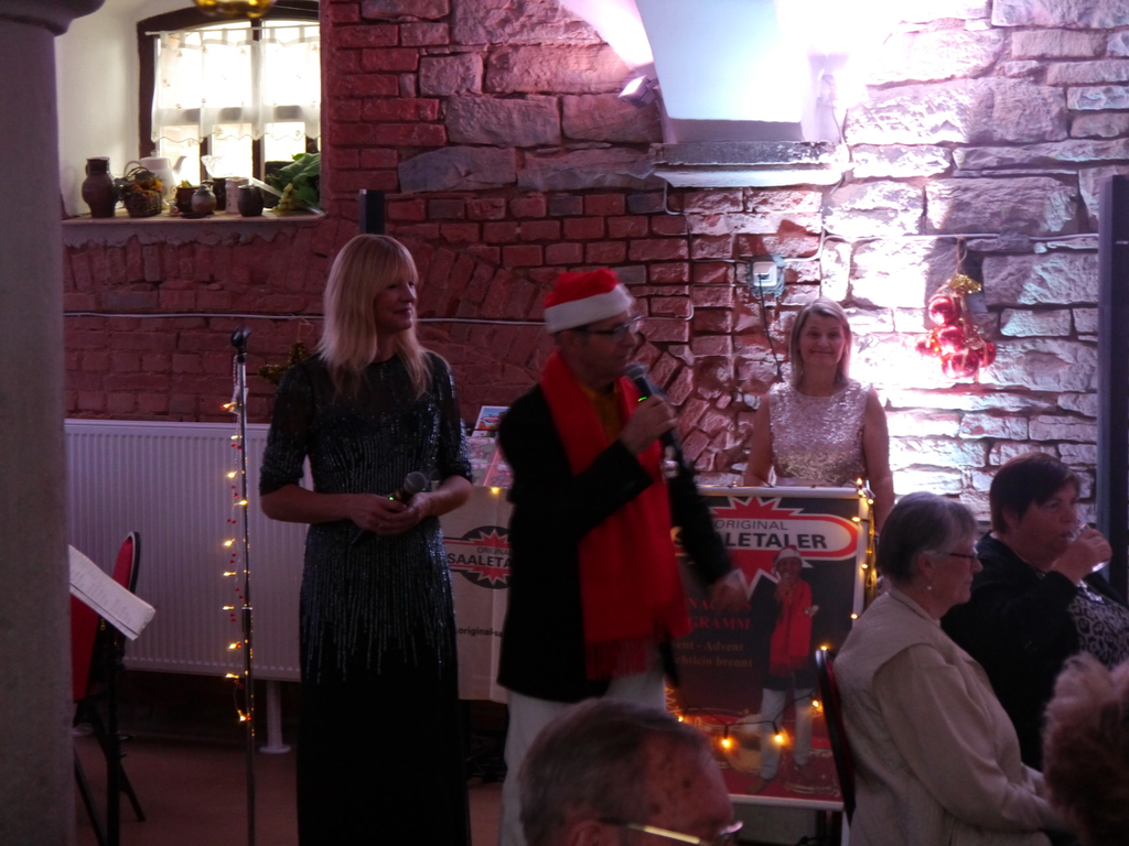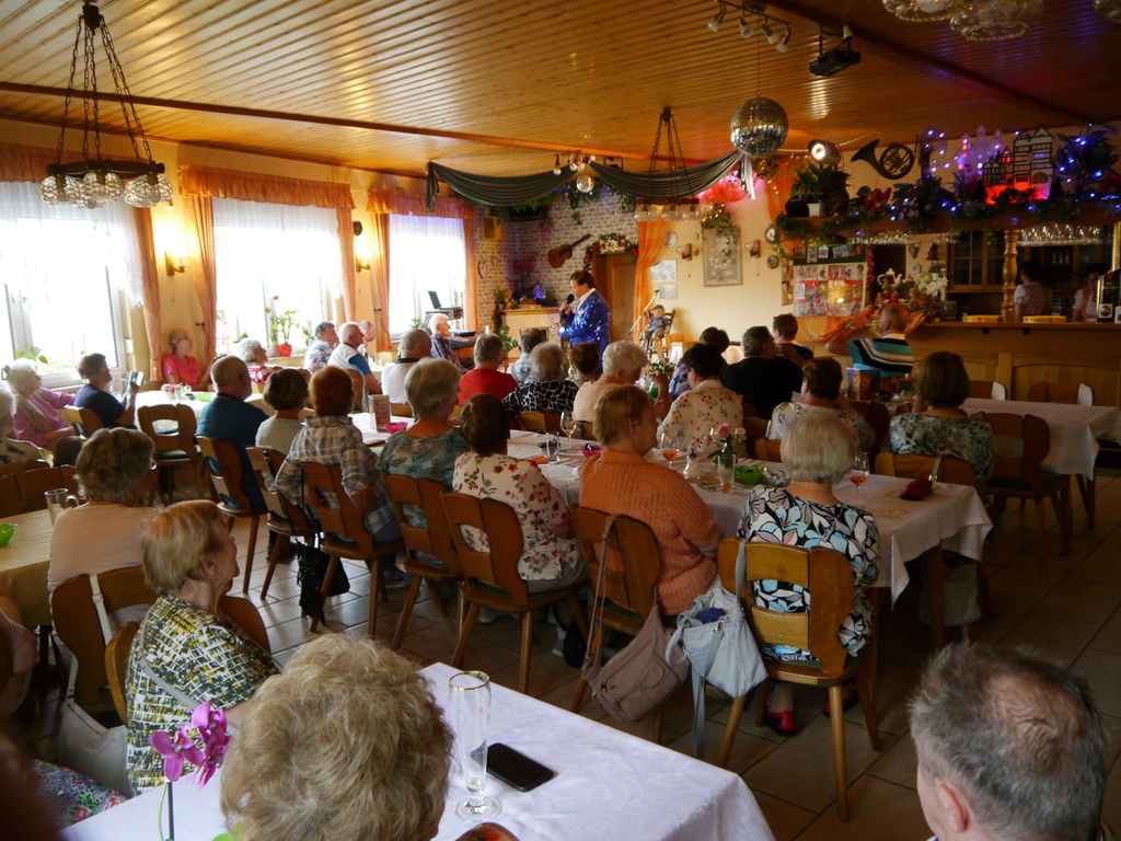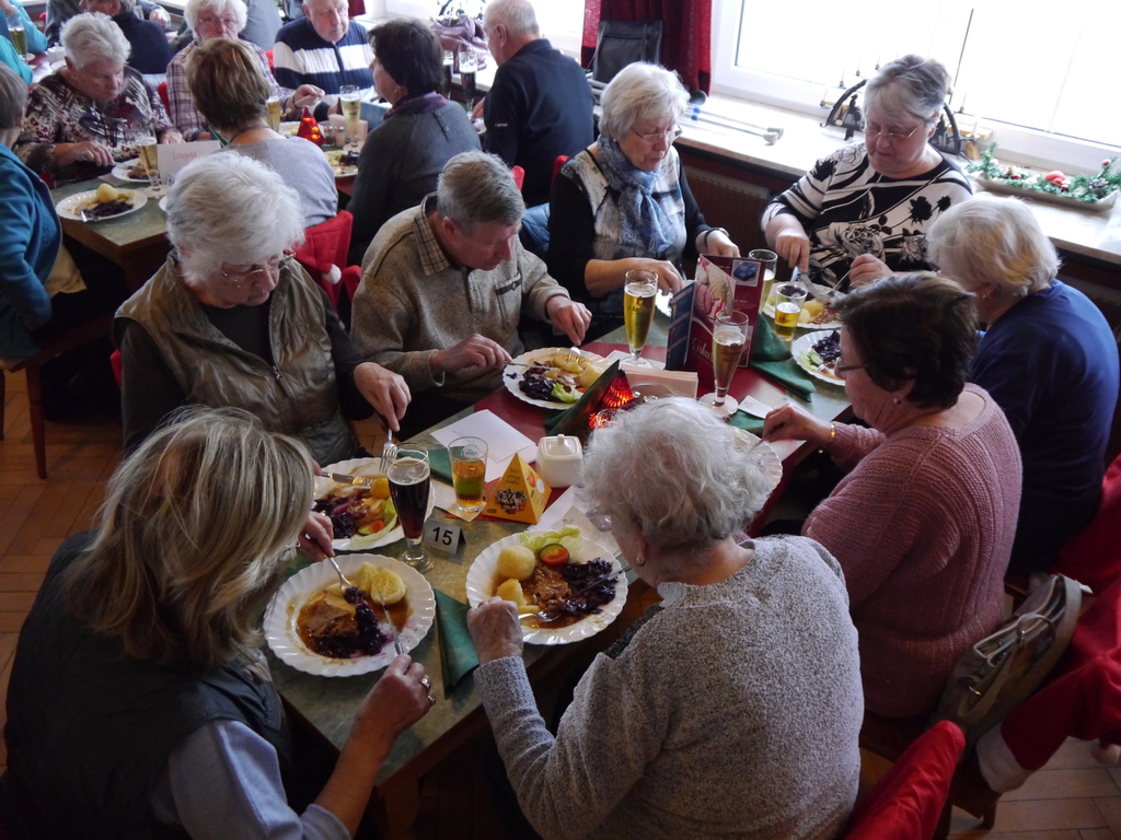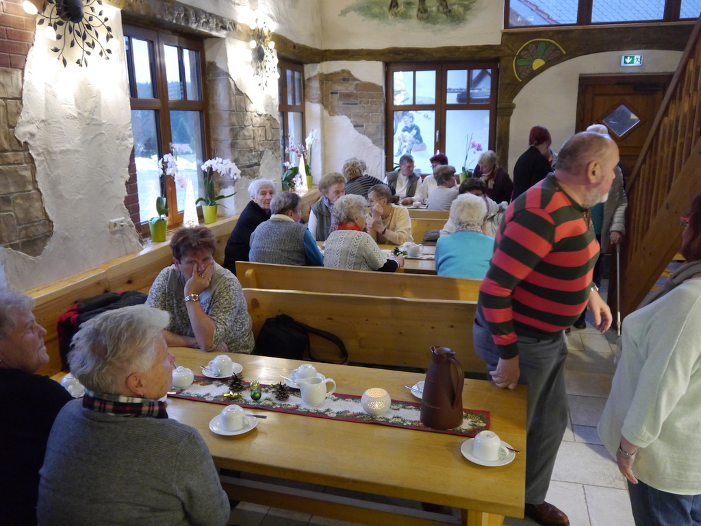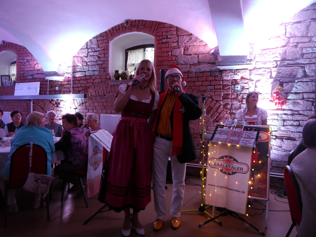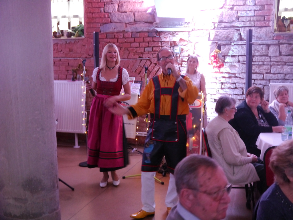 Traditionell sind unsere Busfahrten in der Weihnachtszeit, mal zu einem Weihnachtsmarkt, mal in eine Gaststätte, so wie auch in diesem Jahr. Bereits zu Ostern besuchten wir Familie Gatzsch in der Parkgaststätte Falkenhain, die uns mit ihrem schmackhaften Essen und der Auswahl der musikalischen Beiträge überzeugte. So fiel uns die Entscheidung leicht, die Einladung zu einem musikalischen Adventsausflug in die Parkgaststätte Falkenhain anzunehmen. Nach dem leckeren Mittagessen mit Gänsebrust, Rotkohl und Klößen im festlich geschmückten Saal erfreuten uns Andrea und Wilfried Peetz mit einem stimmungsvollen Potpourri weihnachtlicher traditioneller und moderner Lieder.