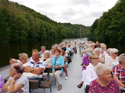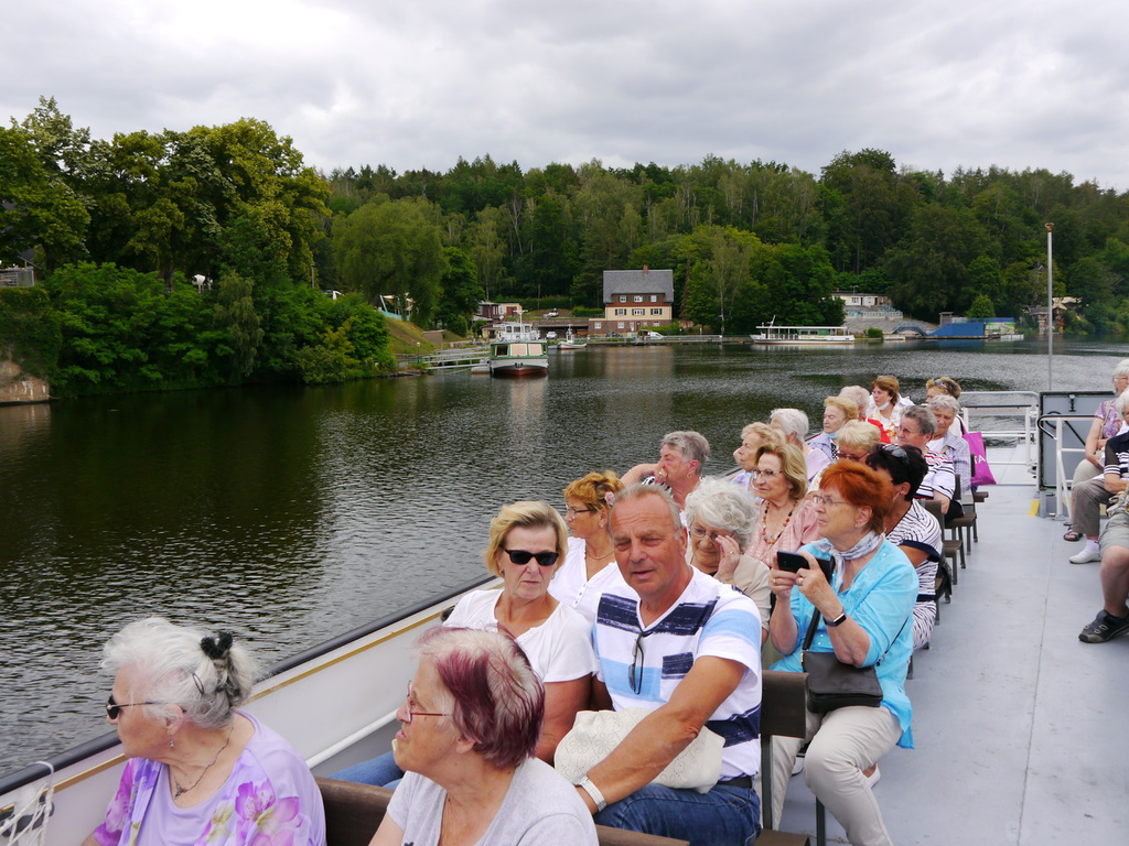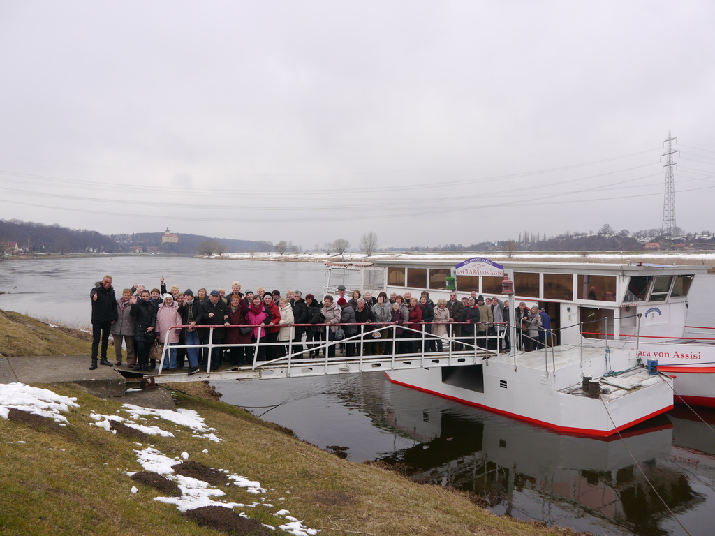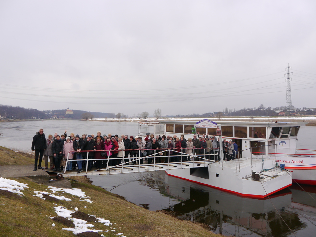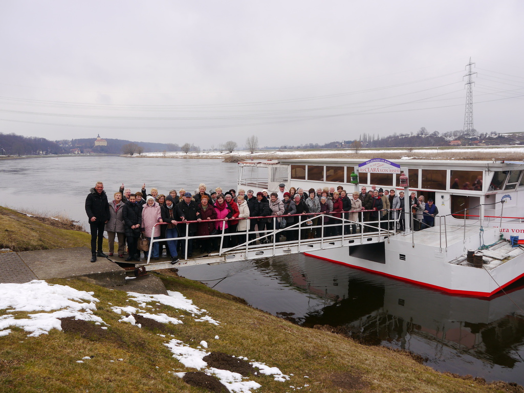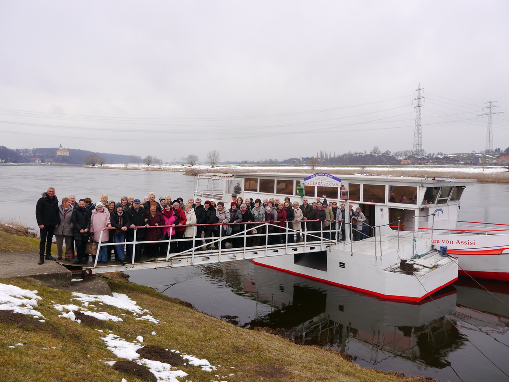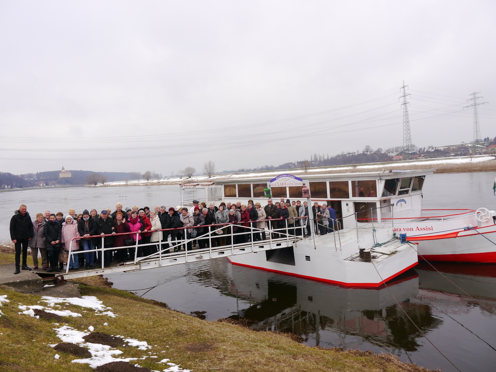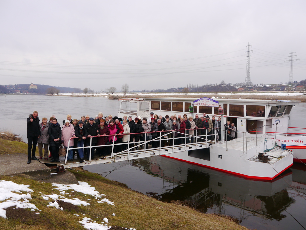 Nach einem leckeren Mittagessen in der »Elbklause« Niederlommatzsch erwartete unsere Vereinsmitglieder das Fahrgastschiff »Clara von Assisi« zu einer Rundfahrt auf der Elbe, die durch interessante Erklärungen zur Region abgerundet wurde.