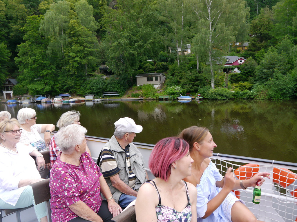 Am Mittwoch, den 15. Juni 2016 ging es für unsere Vereinsmitglieder bei traumhaften Wetter mit dem Doppeldecker-Bus zum Schiffsanleger. Bei einem gemütlichen Mittagessen genossen die Seniorinnen und Senioren eine Schifffahrt mit der „FMS Wachau“ auf dem Markkleeberger See mit Kanaldurchfahrt und Schleusung auf den Störmthaler See. Neben den vom Schiffskapitän unterhaltsam und interessant erzählten Geschichten, bot sich den Vereinsmitgliedern zudem ein traumhafter Ausblick auf die Landschaftskulissen entlang des Ufers. Nach einer gelungenen Schiffsfahrt ging es schließlich wieder mit dem Doppeldecker-Bus zurück!